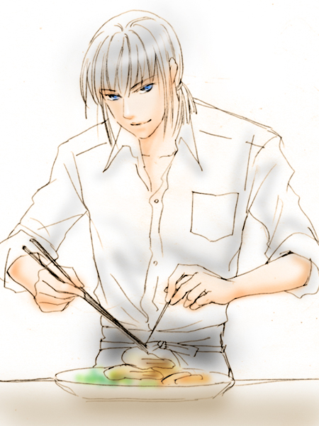 手フェチとして欲望駄々洩れですが、料理上手な印象があるイザークには、菜箸やトングを使って上手に盛りつけなどをしていただきたいです!(鶏手羽串焼きを描きたかった)