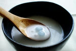 かなり辛いので娘はチキンソテーだったのですが、ココナッツミルクを見て羨ましがったのでデザートはタピオカにしました。少し前に業務用の食材のお店で見かけて買ってみたブルータピオカです。