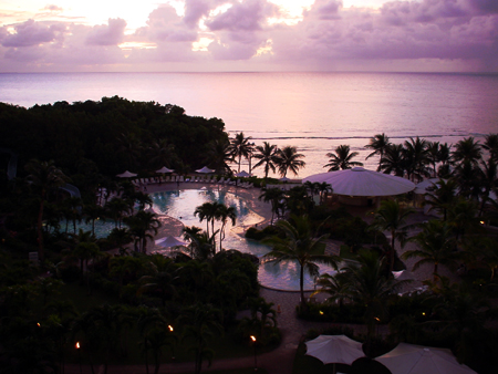 まずは、到着した日の夕方、ホテルの部屋から見えたビーチとプールです。