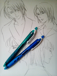 画像のボールペンはパート先で使用しているもので、心の中で「イザペン」「アスペン」と呼んでいます。(何もないよりましかと思って、机の上の落書きを一緒に携帯カメラで撮りました)