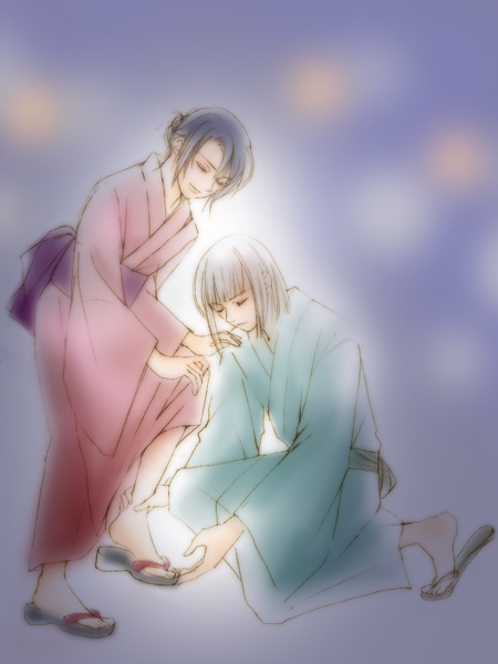 鼻緒を直す男前イザークの伏せた目元に『睫毛も銀色なんだ…』と、見とれるアスランv
