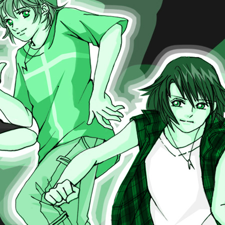 拍手用のイラストの一部です。実際はかなり小さいので表情はほとんどわからないかもしれません。しかも必要以上にカラフルにしちゃいました。ずっとモヤモヤな着色ばかりだったので反動です。