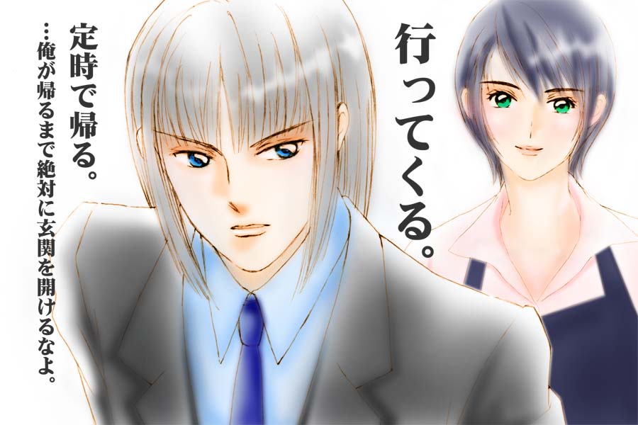 かわいい奥さんを残して会社に行くのが心配な旦那様です。