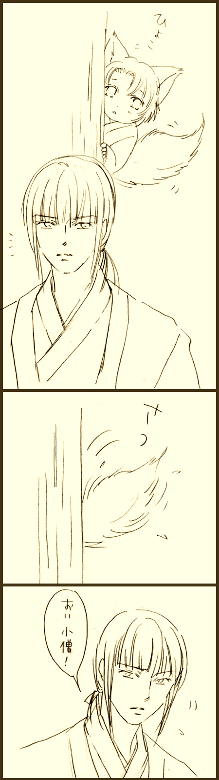 口調は怖いけど、その手はどこか優しく、自分の着物の裾を歯で細く裂いた布を傷ついた足にそっと巻いてくれました。