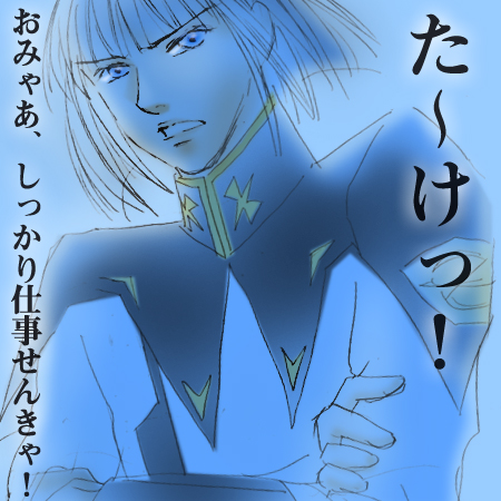 私が住んでいる地域は涼しい日が多くて夏バテはしていないのですが、遊び過ぎたせいか、どうも仕事に身が入らないので、イザークさんに、マイブームの名古屋弁(P様いつもありがとうv)で叱ってもらいました(笑)