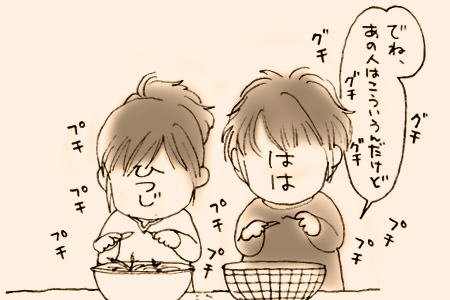 色々疑問を抱きつつも、茶の間で二人並んでもやしの根っこを取りながら気がつきました。
