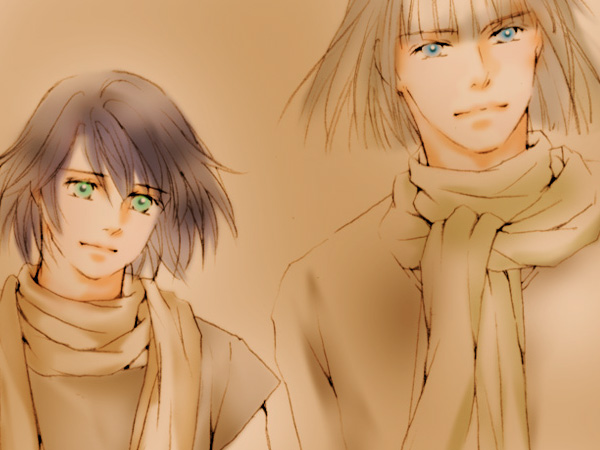 表紙を描かせていただいた御本ですが、脱稿したって浮かれていたら後書きのコメントに貴重な1Pをくださるというので、イザアス絵でごまかそうかと思います(←コラ!)